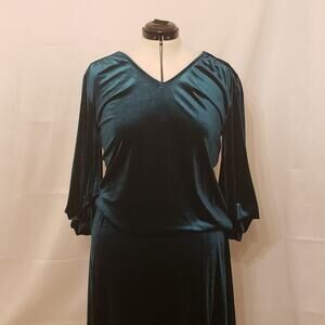 Emerald Green Velvet 3/4 Sleeve Blouse and Skirt, by Collections Etc. LG (14/16)