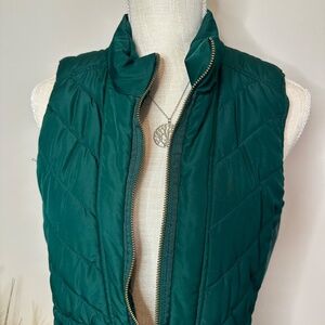 Emerald green quilted zipper vest with pockets. In great condition. Light weight with adjustable bottom.
