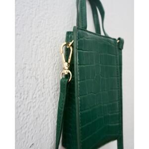 Minimalist forest-green crossbody by Siizu, crafted in their signature eco-friendly faux leather with a crocodile-embossed texture. Slim, structured, and surprisingly roomy for a small bag — it fits your essentials (phone, cards, keys) without bulking up your outfit.