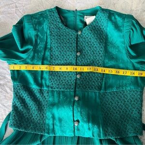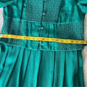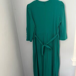 Emerald Green vintage Midi Dress with Crew Neck and 3/4 Sleeves