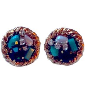 #vintageearrings #emeraldcrystals #goldtonestuds #turquoisejewelry #bridalaccessories