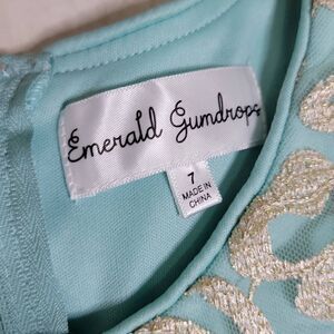 Emerald Gumdrops Floral Embroidered Metallic Tulle Popover Dress 7