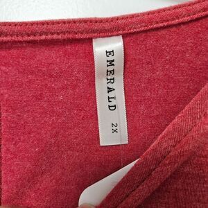 Emerald Knit Dress Women's 2X Red Round Neck Long Sleeve Ruffles Peasant NWT