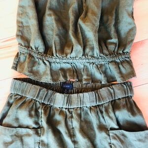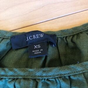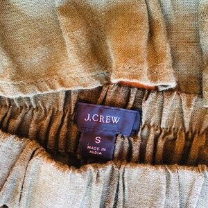 Darling J.Crew Emerald green linen set. Ruffled waist crop top with tie shoulders (size XS) and elastic waist pocket pants (size S). The color in the photos is inconsistent, but it is a rich emerald green like the last image, not fatigue/army green. Worn once, excellent condition!