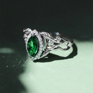 "Emerald Marquis Gem Leaf Weave Silver Noble Rings for Women, MARR9100