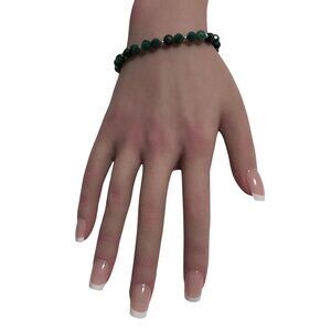 Emerald Micro Faceted Gemstone Beaded Stretch Bracelet 14K Gold Accent Beads