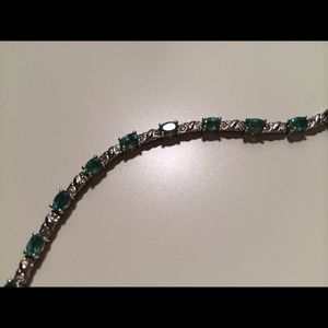 Emerald Platinum Overlay Sterling Silver Bracelet