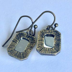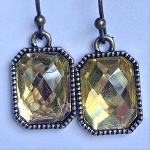 Emerald Radiant Cut Champagne Topaz Crystal Earrings Brass Gold Tone Dangle