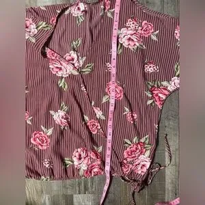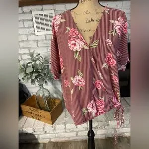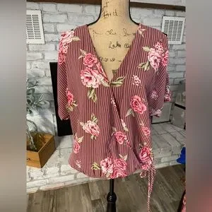 Pretty top from Emerald featuring striped and floral print. Beautiful roses makes this a perfect top for summer