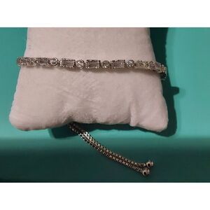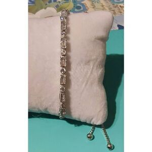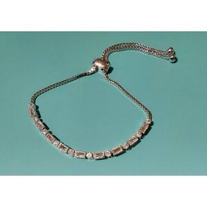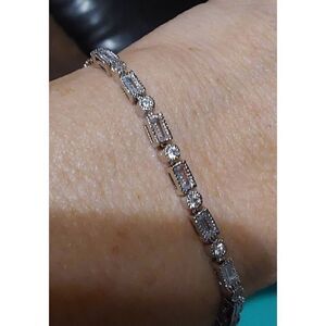 This beautiful Bolo Bracelet features 3.75 carats of sparkling round and emerald cut lab created diamonds. Each stone is set into a Milgrain Beaded setting . The setting and Bracelet is done in an 18k white gold plate finish which will keep it tarnish free for life. The Bolo style closure is super comfy. .