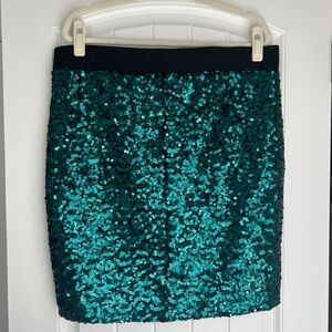 Shimmer and shine in this stunning emerald sequin skirt. Perfect for a night out or special occasion. Torrid size 2. 19” waist laying flat 22” long.