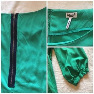 **FINAL PRICE**This emerald green shift dress is both effortless and chic. 3/4 length sleeves and a banded bottom give this dress a perfect weightless effect that is casual and classy at the same time. Navy accent Zipper is a great touch! Easy to dress up or down. EUC no flaws. Size M but runs small imo.