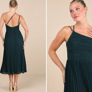 Make a graceful entrance at your next formal occasion with this stunning midi dress from Lulus, designed to flatter and impress. In new, never-worn condition, this size XS piece features a chic accordion-style silhouette and a stylish side strap detail that adds a modern twist to classic elegance.