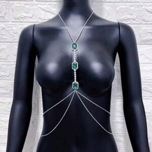 Emerald Silver Zircon Body Chain, Elegant, Classy, Minimalist, Punk