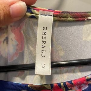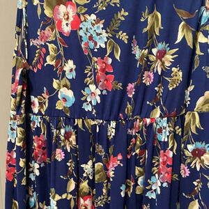 Emerald Size 2xl Blue Floral Midi Sleeveless Dress