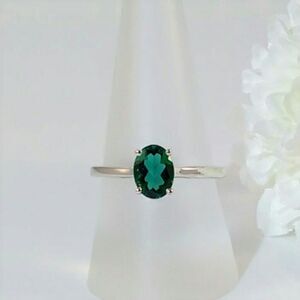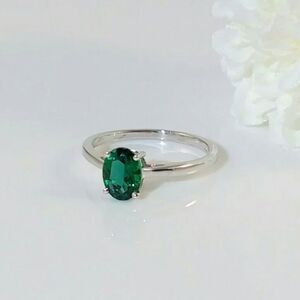 Genuine Lab Created Emerald Solitaire Ring 1.2 Carats Ring Size 7