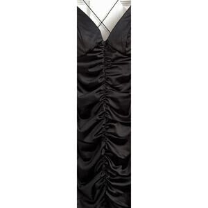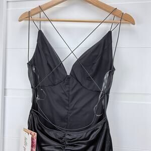 Emerald Sundae Black Ruched Satin Size M -Mini Dress Criss-Cross Back NWT