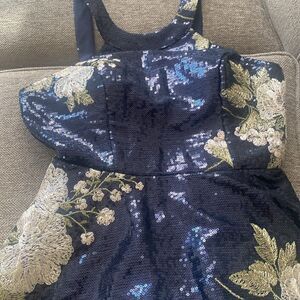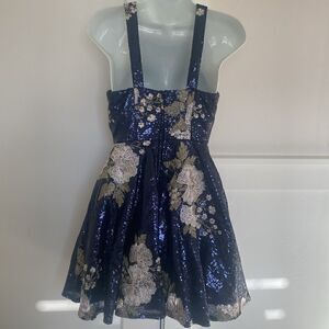 Emerald Sundae Blue Sequined Floral Embroidered Fit & Flare Halter Dress Juniors Size 3 NWOT