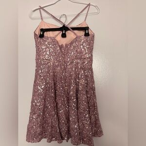 Chic dress with shimmering sequins. Soft blush color. Ideal for parties.