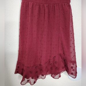 Emerald Sundae Burgundy Glitter Polka Dots Mini Dress with Spaghetti Straps Sz S
