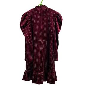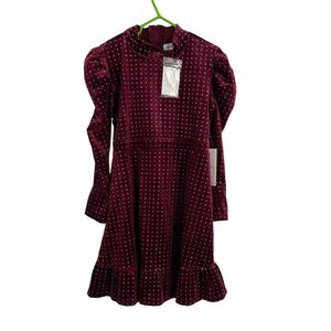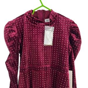 Emerald Sundae Burgundy Velvet Puff Sleeve Dress 8 New