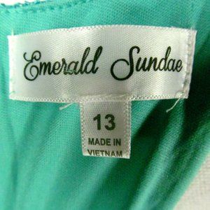 Emerald Sundae Dress Size 13 Teal Floral Sleeveless Zipper Back - In good used condition. Made in Vietnam. 98% Polyester 2% Spandex. Lining 100% Polyester.