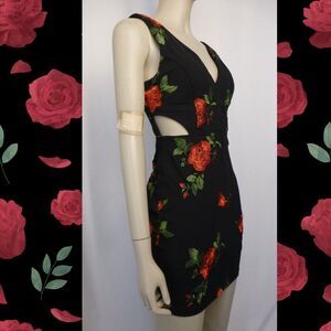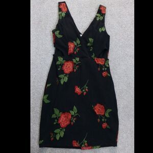 Description: Pre-Owned and still in good condition. Peak-A-Boo accents at sides and lower back. Sleeveless. V-Neck. Beautiful embroidered roses all around.