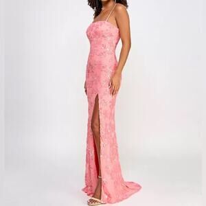 Emerald Sundae Juniors' Floral-Sequined Gown Coral/Peach Sz M NWT