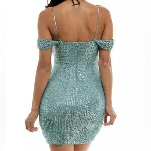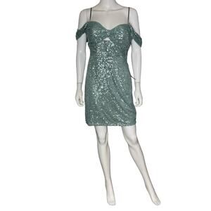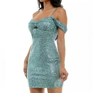 Emerald Sundae Juniors' Sequin Embellished Sweetheart Bodycon Dress Sage Sz XL