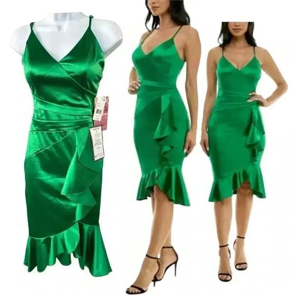 The Emerald Sundae Juniors XS dress is a short, fitted, green dress featuring a strappy, ruffled design with a surplice neckline. Ideal for teens, it is perfect for formal occasions. New with tags. Brand: Emerald Sundae Size: XS Style: Strappy, Ruffled, Fitted Dress length: Short Color: Green Department: Juniors Neckline: Surplice Occasion: Formal