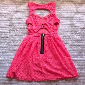 Charming pink lace dress. Sleeveless design. Perfect for any occasion.