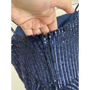 Emerald Sundae Sequined Gown Size Medium Dark Blue Adjustable Straps Side Slit