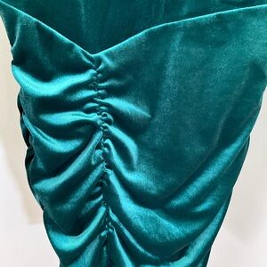 Chic long sleeve dress with a ruched design. Soft velvet fabric. Perfect for stylish outings.