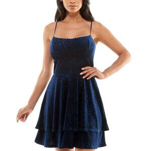 Emerald Sundae Womens Juniors Velvet Mini Cocktail Party Dress Blue Size L NWT