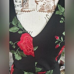 Emerald Sundae black mini dress with embroidered roses size small