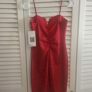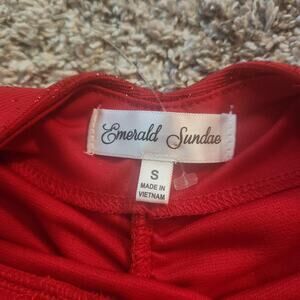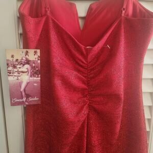 Emerald Sunday Red Sparkly Dress with Ruched Detail