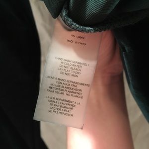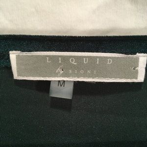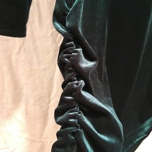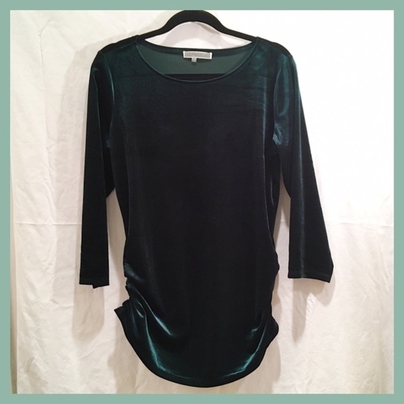 This tunic is like new. It’s a soft silky velvet, three quarter sleeves, and is ruched on each side on the bottom.