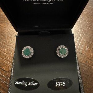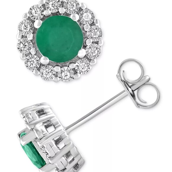 Beautiful Emerald (1 ct. tw.) & Diamond (1/10 ct. tw.) Halo Stud Earrings set in Sterling Silver. Approx. diameter: 1/4". Retail price: $325.00. New in box. Never worn. Much prettier in person. Please ask questions and review photos. No returns, and I only ship within the U.S.