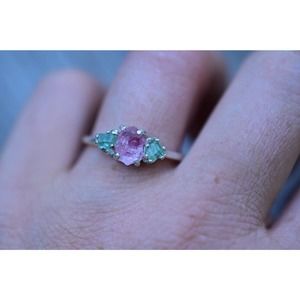 Handmade emerald and pink tourmaline ring in 925 sterling silver.