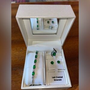 Emerald bracelet, necklace pendant and stud earrings *no chain for necklace*