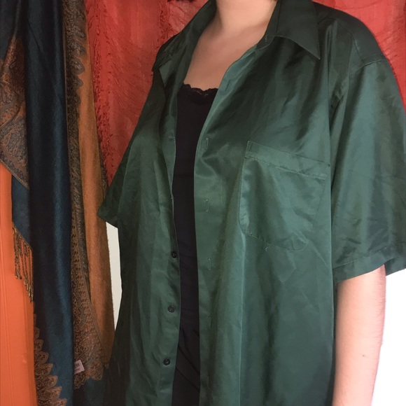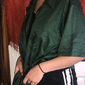 Emerald green silk button up super saucy never worn no flaws honestly I could probably sell this on Depop for way more but o well