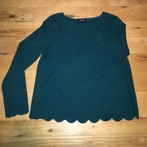 Lasered scallop edge on hem and sleeves.