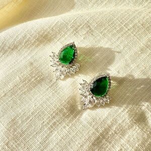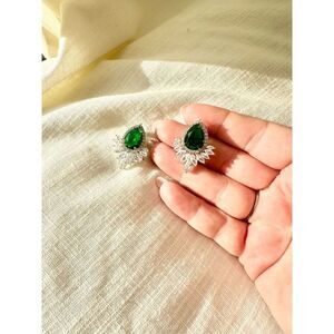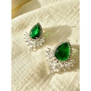 Emerald green tear drop super sparkly cubic zirconia stud earrings