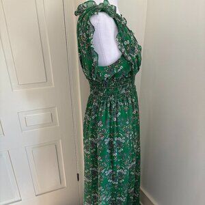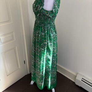 Emerald-Green Floral Maxi Dress with Smocked Waist by Max Studio, Size Medium