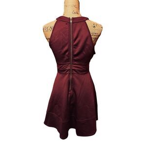 The Emerald Sundae Wine Burgundy Cocktail Party Dress is a stylish and sophisticated choice for any party or cocktail event. This sleeveless dress features a solid burgundy color, a flattering fit & flare style, and a trendy cut out design. Made from a blend of polyester, spandex, and nylon, the dress has a comfortable short length and a zip closure for easy wear. Perfect for the modern woman looking to make a statement at her next special occasion.