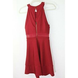 Emerald Sundae Sheer Mesh Waist Red Dress