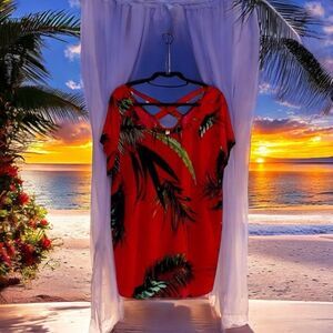 Emerald Tropical strappy back Tunic Top Size 2X
