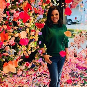 UPDATE SOLD!!Emerald green bat wing sweater, boat neck but it can be worn off the shoulder easily. I cannot remember what brand it is because I removed the tags, super soft -I’m pretty sure it’s acrylic, it’s light to medium weight, elastic waist can be tucked in or worn out. Very flattering.