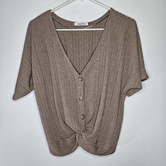 Emerette Brown Ribbed Twist Front Crop Top Sz L