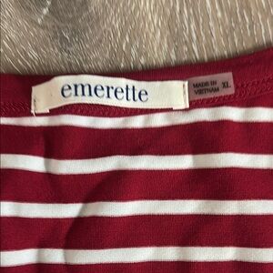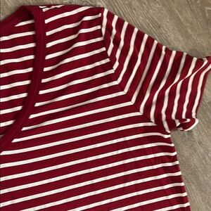 Emerette XL Red White Striped V-Neck Tee | Soft Rayon Blend |Nautical Casual Top